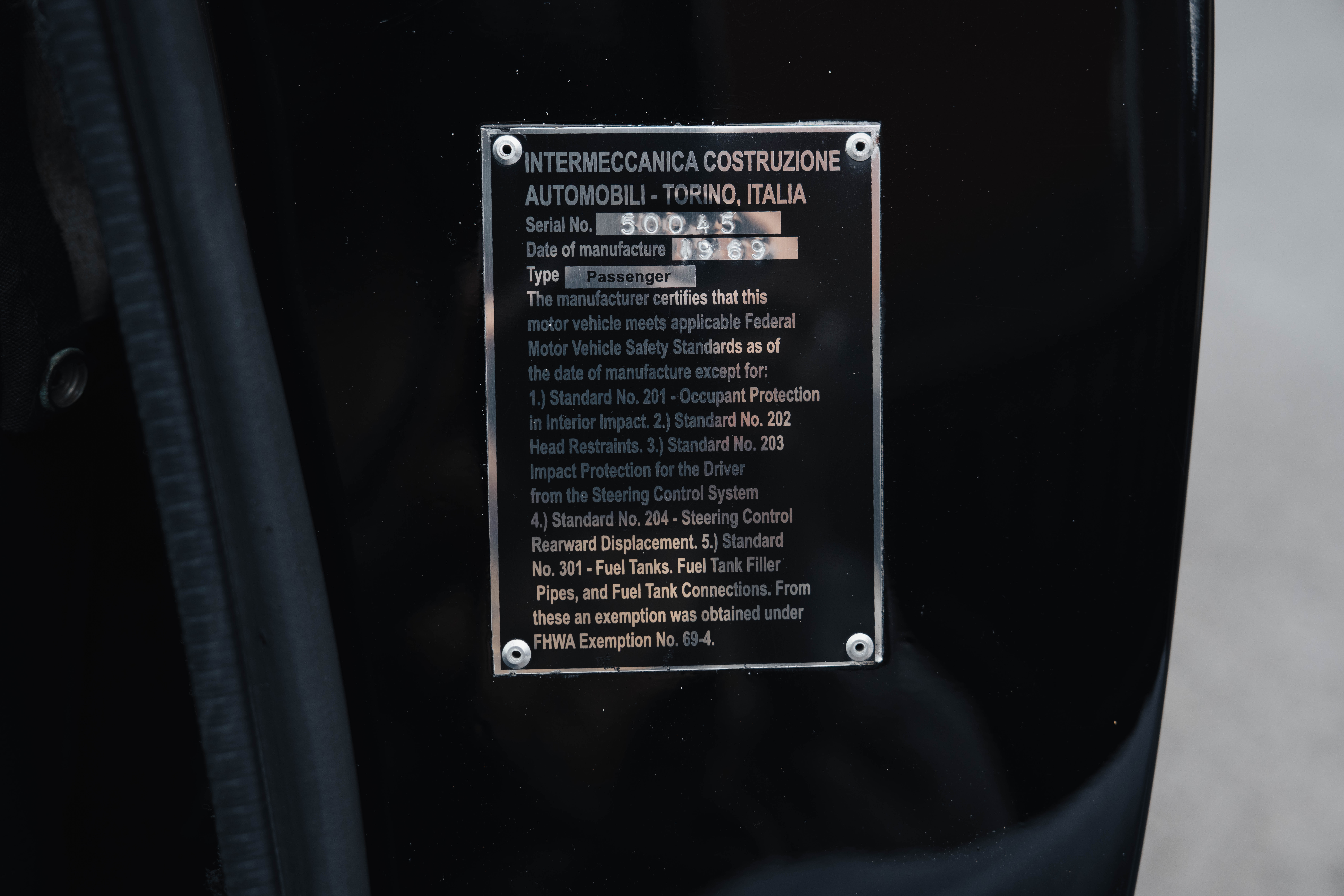 This specific Intermeccanica Italia Spyder, chassis number 50045, was delivered new to Torino Cars in New Jersey on June 7, 1969. The chassis number follows Intermeccanica’s system, where the 5 signifies a convertible model, and 45 indicates it was the 45th Italia ever built.